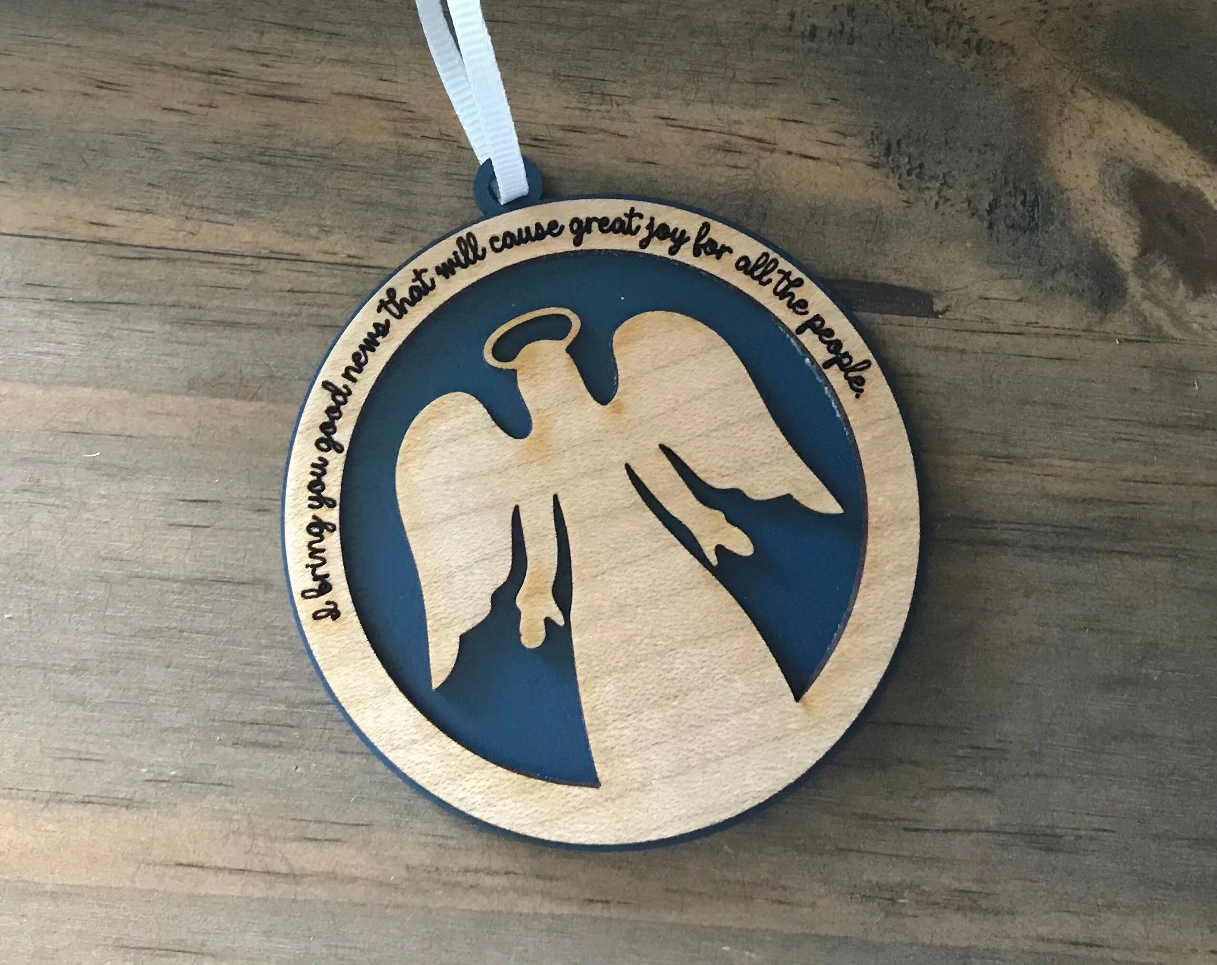 And an angel with the border text reading, “I bring you good news that will cause great joy for all the people” engraved.